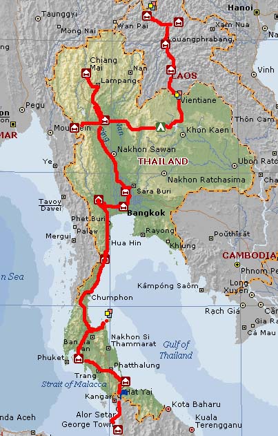 The drive to towards the border was fairly uneventful (actually have been a bit slack with the diary writing lately and can't remember much about that day, so assume it was uneventful!). We stayed at the Amsterdam Hostel in Songkhla which is apparently popular with overlanders - a Dutch couple had passed through with a landrover a few months before, presumably doing a similar trip to us. Some backpackers told us that there was now an outbreak of Dengue fever on Ko Phangan and Ko Tao so it looks as though we left just in time.