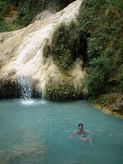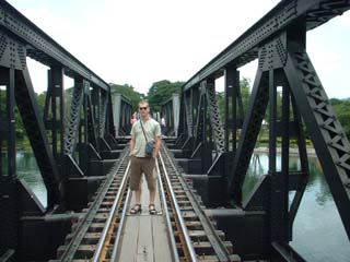 Quite a relief to leave the big city and head west to Kanchanaburi where the infamous 'bridge on the river kwai' was built in WW2. We stayed on the river in a raft house which would have been really relaxing had it not been for the 'disco duck' moored opposite - a large floating disco that blares out music from 7 am to 2am each day, and not the sort of music that inspires you to the 'if you can't beat them join them' attitude. So the ear plugs came in useful again. We also visited the Erawan waterfalls, but these ones were really spectacular with some large pools for swimming (the picture is just one of the 7 levels) - you win some you lose some I guess.
